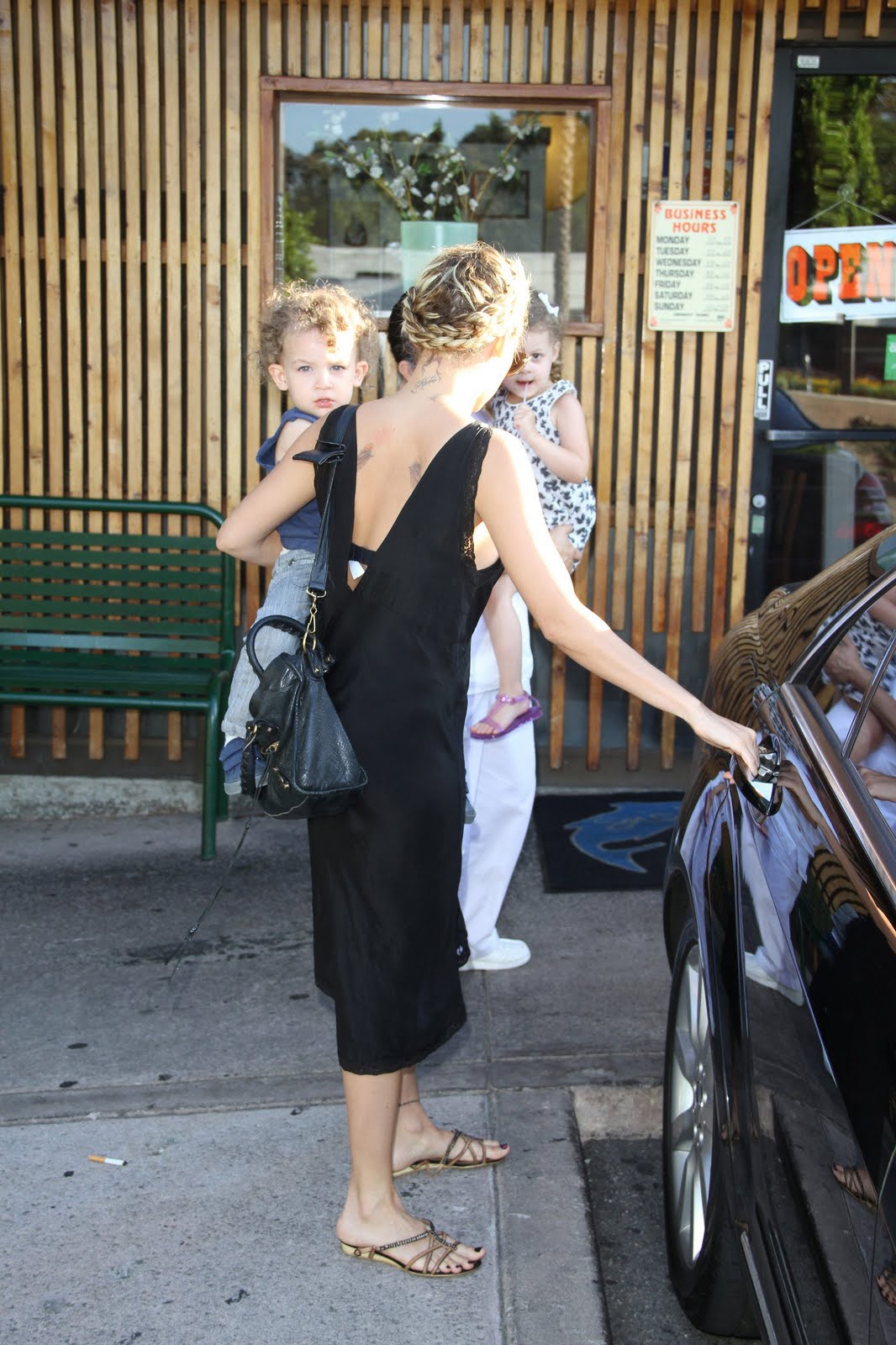 También el día 15 de agosto, Nicole fue vista llevando a sus hijos Harlow y Sparrow al restaurante Katsuya en Los Angeles. La fashionista usó un vestido de Winter Kate, unos lentes de sol de House of Harlow 1960 y una bolsa de Balenciaga.